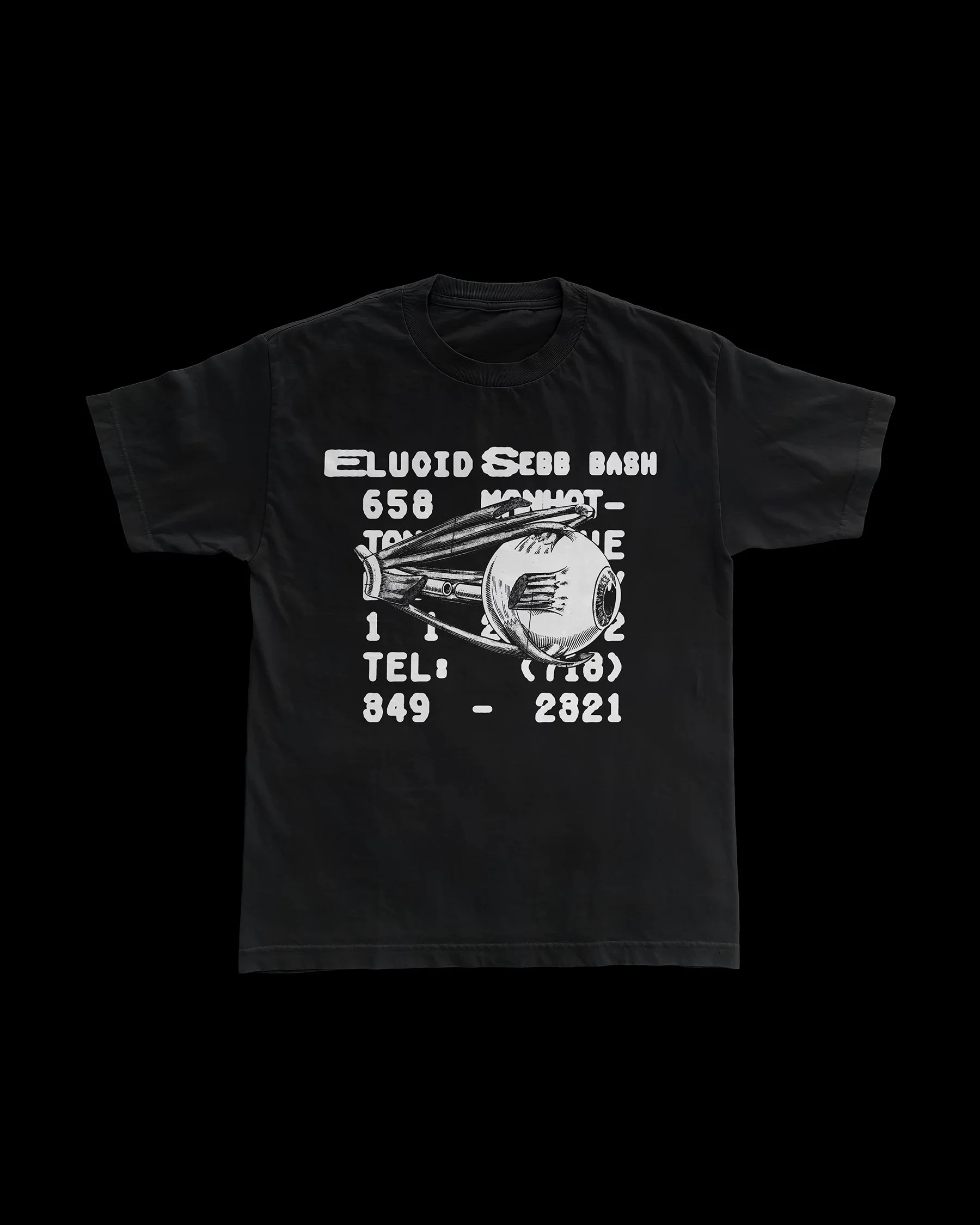 New merchandise design for Elucid & Sebb Bash. The graphics pull from everyday city artifacts: receipts, surveillance imagery, timestamps, handwriting, and layered signal noise. Rather than illustrating the music directly, the visuals translate its atmosphere into a set of recognizable but fragmented forms.